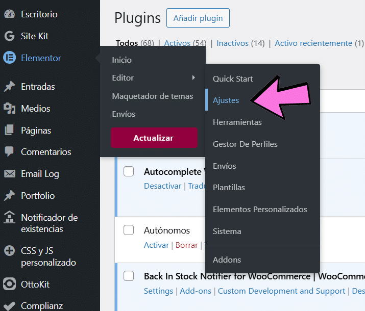 Para empezar, te habrás dado cuenta de que elementor ya no está en el mismo sitio del menú de tu backoffice, ahora lo han puesto casi arriba del todo del menú.